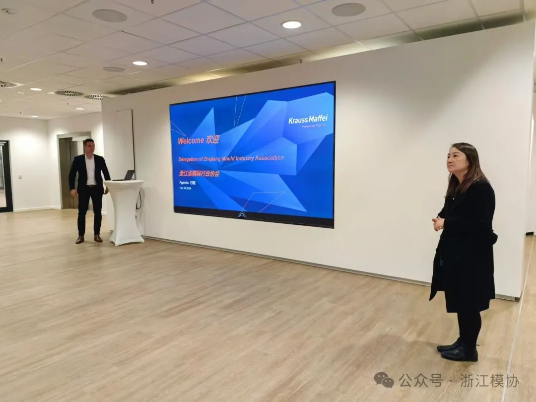 Upon arrival at KraussMaffei, Mr. Christian Krampfl, the Global Key Account Sales Manager, warmly welcomed the Zhejiang Mould Association delegation and briefly introduced the company’s basic information and the latest research and development achievements and technological innovations in the injection molding machine field, including breakthroughs in energy conservation, consumption reduction, and improving production efficiency. Global Customer Sales Department’s Xie Qi’er provided translation and assistance.